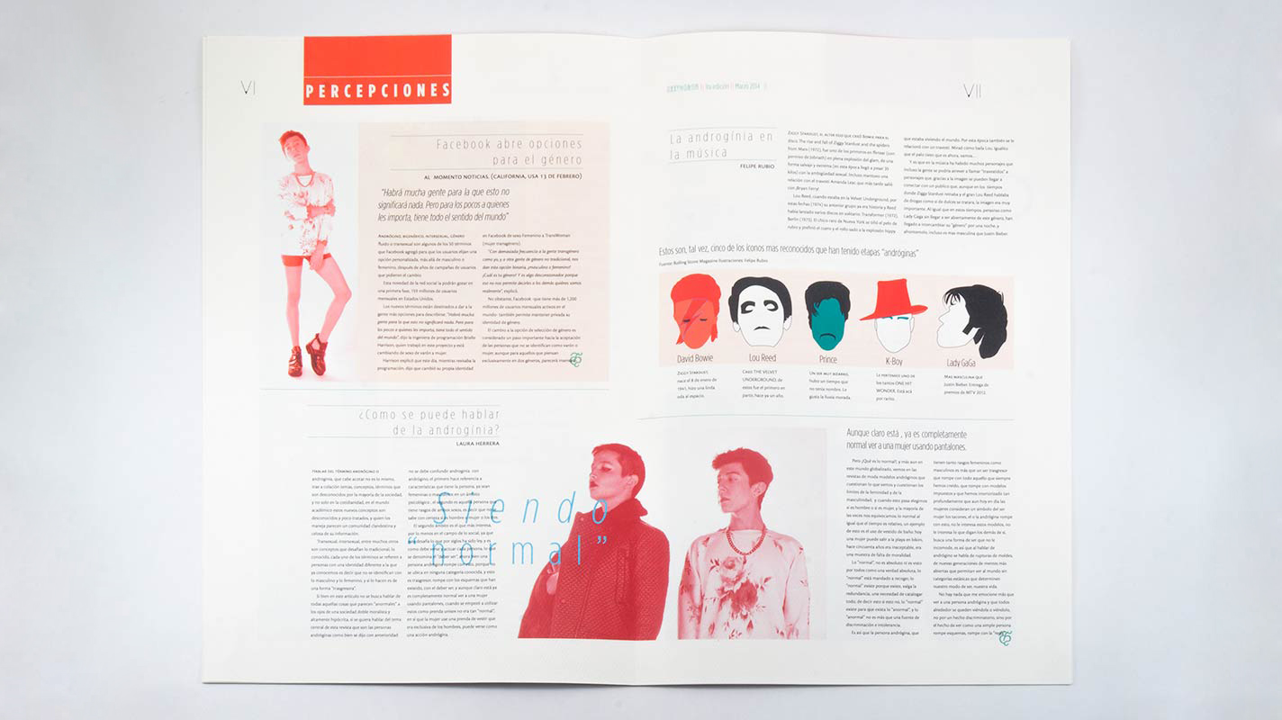 Un proyecto periodístico para informar sobre la diversidad de género, en esta publicación el tema principal está orientado hacia la androginia. Los andróginos son un grupo de personas que no están vistas como personas “comunes” ya que lo “común” es lo que la mayoría piensa y está acostumbrada a observar en su cotidianidad. Se quiso mostrar el lado que la gente no ve